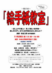 楽しみながら、日々に絵手紙を生かしませんか? 講師 安達三郎(絵手紙講師) <自由参加 予約不要> 参加費: 200円(会員100円) 当日の持ち物: 絵具 小筆2本 水差し(筆を洗う) 当日描く品物を必ず持参して下さい