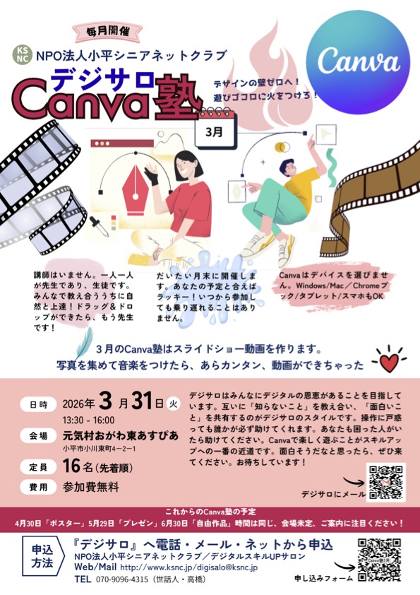 3月のCanva塾はスライドショー動画を作ります。