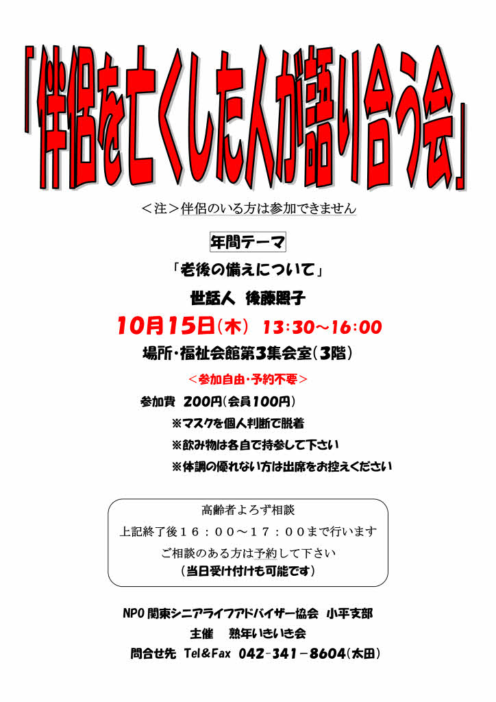 年間テーマ「老後の備えについて」 <参加自由・予約不要> 参加費: 200円(会員100円)
