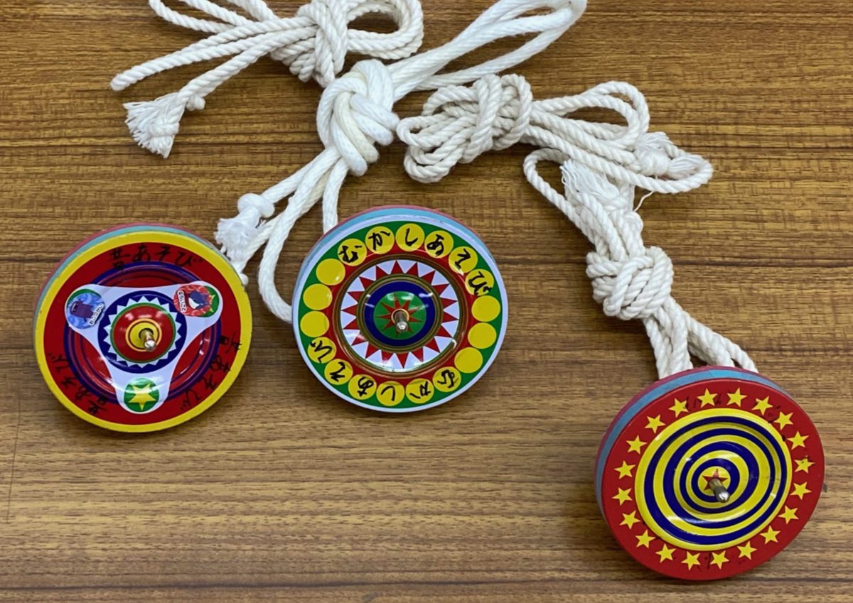 お手玉、竹返し、ブンブンゴマ、けん玉など昔あそびを一緒に楽しみましょう。