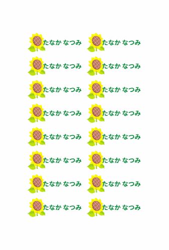 子ども向けに自分でパソコンを使用して、名前シールを作成印刷して、お渡しします。 名前シールは、ハガキサイズ1枚にシール16面を印刷します。